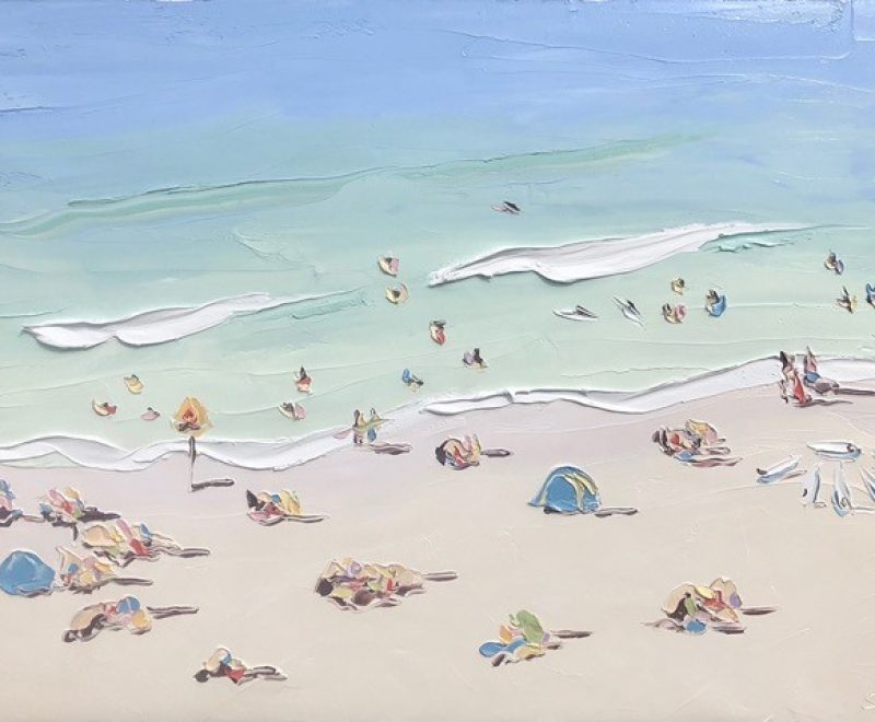Over the past few summers Sally has been visiting various other beaches to develop the beach series into the amazing body of work it has become. She says “I love painting the various coastal aspects, it’s been a fun challenge”.