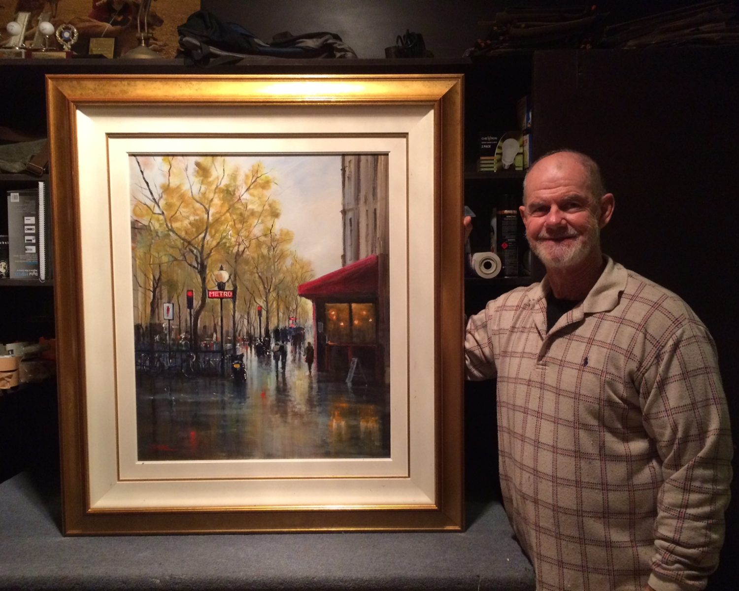 Greg Jarmaine regularly travels to Paris to visit family and loves to take his paints with him. He often paints there “en plein air,” following the well trodden footsteps of so many brilliant artists before him. His Parisian scenes capture the historical buildings, streets and obscure laneways filled with the hustle and bustle of present day Parisian life. With an accurate palette, he refers to the chromatic tones of the overcast weather and city smog, olive stone buildings and the vibrant reds that highlight Parisian restaurants and hotels.