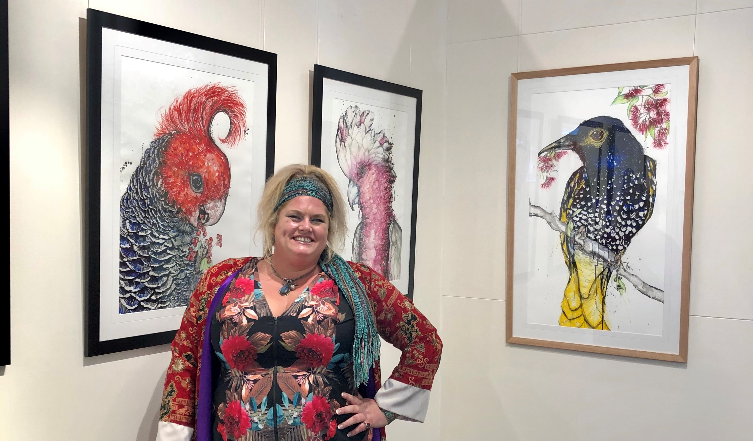 Kelly-Anne Love at KAB Gallery Terrigal with her paintings.