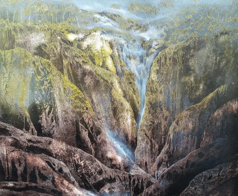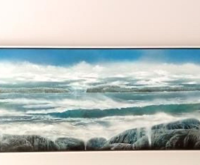 Oates’ elegant paintings are characterized by a layered and textural approach. Her work is an organic and beautiful series of natural forms and silhouettes that merge the delineation between land, sea and sky. In this sense her works reflects moods, feelings and memories about landscapes rather than a representation of a particular places. The absence of any figurative forms in her landscapes is deliberate, preferring to reference natural forms that would have existed before our human impact and presence. This approach to the landscape could also be described as Romantic and as such her works take on an almost dreamlike or surreal presence.