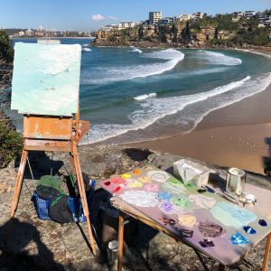 Painted en plein air, Sally West’s beach paintings offer a unique aerial perspective first developed at Freshwater Beach on Sydney’s Northern Beaches. From Bondi and Manly to Terrigal and Avoca, each work reflects the energy of Australia’s shoreline with striking texture and colour.