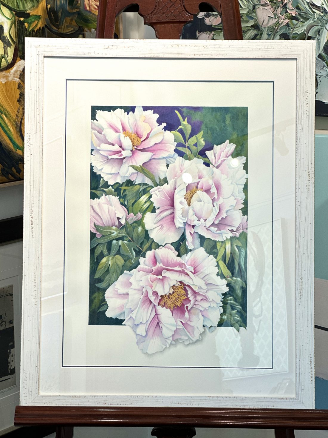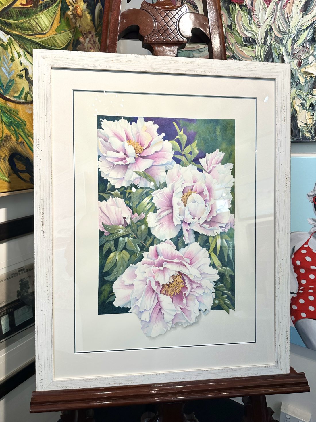 Her love for the flora has led her to the magic of art, making spring sprung forever. Peonies are the most popular subject, collectors enjoy her beautiful representations and attention to the detail of colour variations.