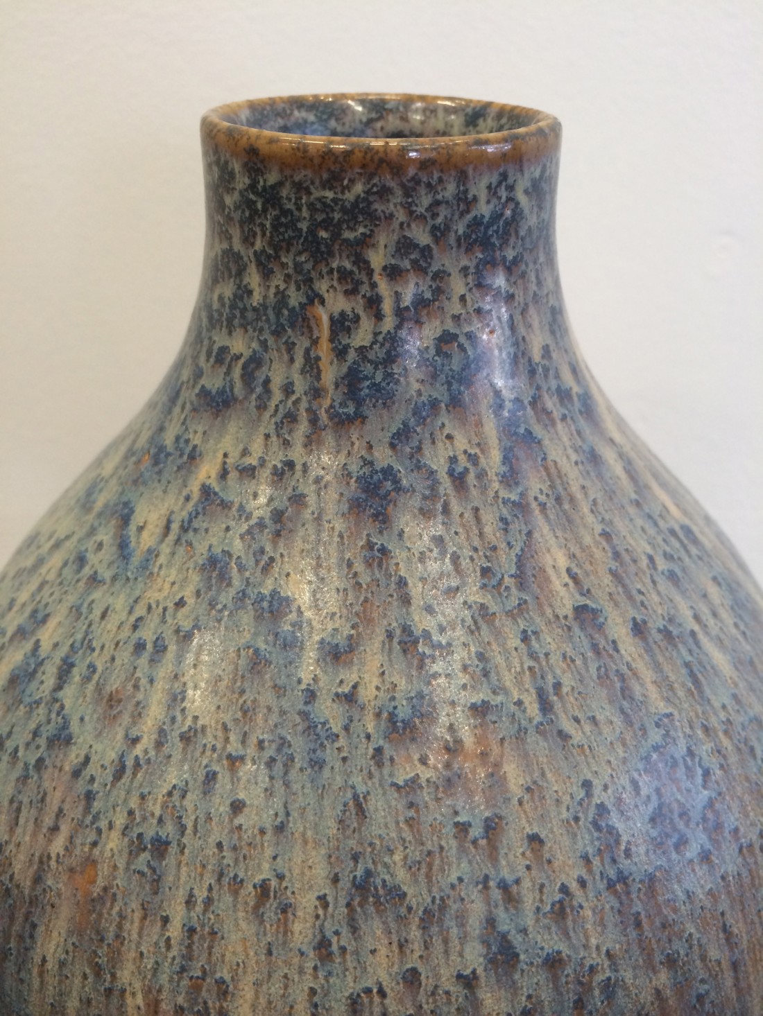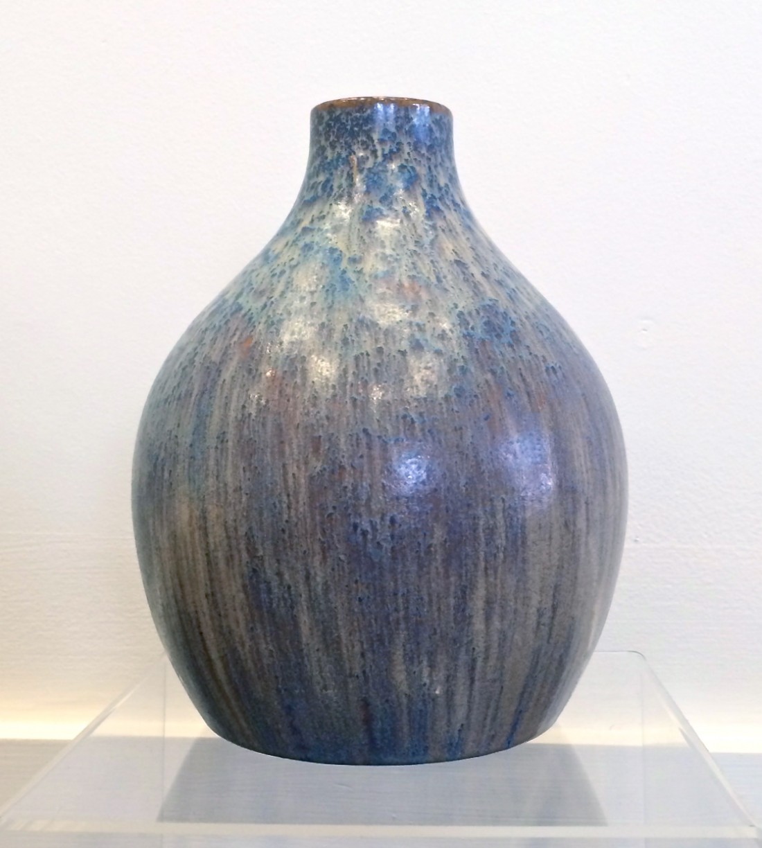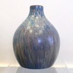 Brushed Earthenware, Blue with cream mottled & streaked glaze. Impressed in oval to base “Ashby Guild”.