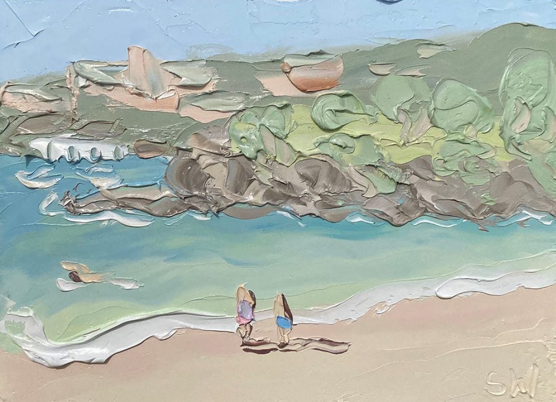 Using her signature impasto style, Sally West brings Balmoral beach and shoreline to life with thick, expressive strokes of oil paint. The textured surface appears like the sparkle of saltwater and the gorgeous energy of the area is represented perfectly.