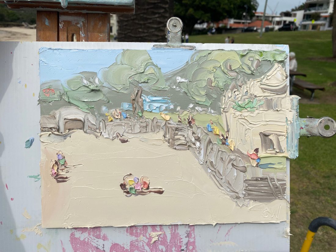 Original textured oil painting created en plein air at Balmoral beach by Australian artist Sally West.