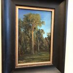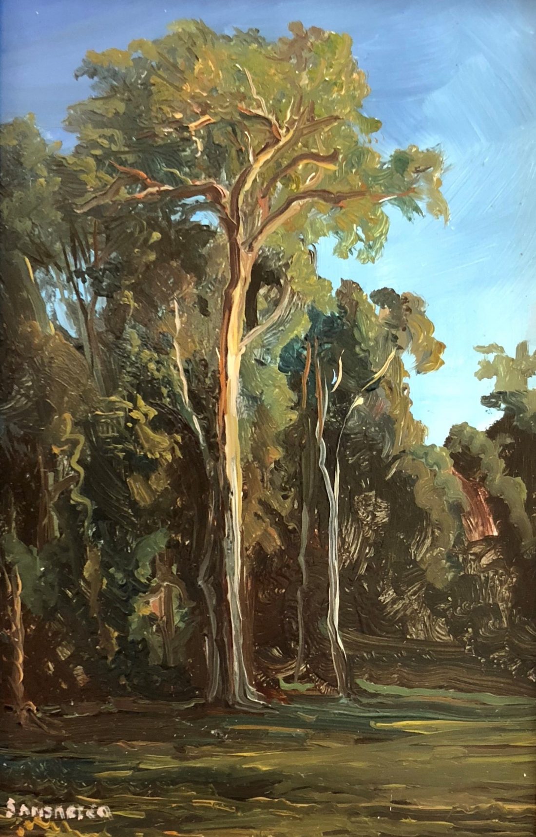 Painted on location in Australia. Framed in contemporary black frame with a gold trim.