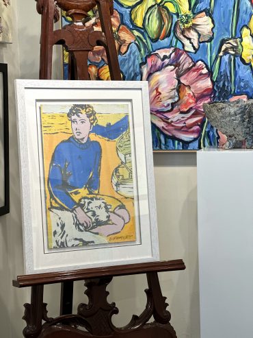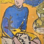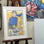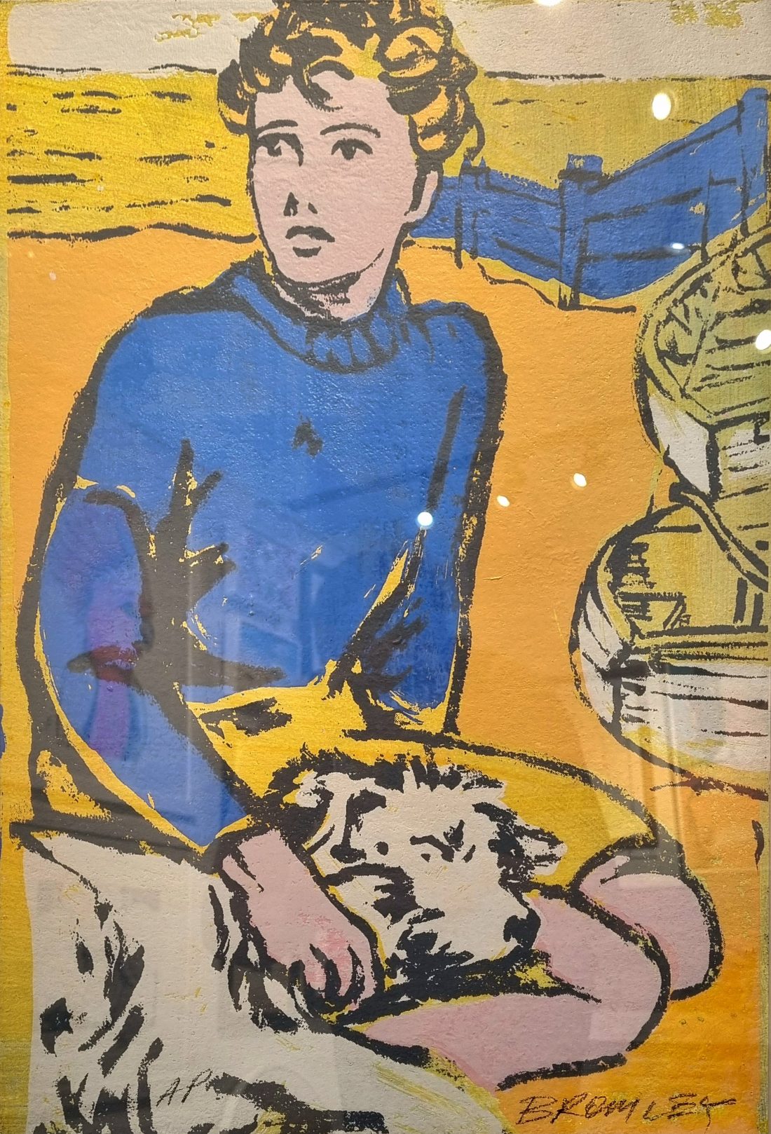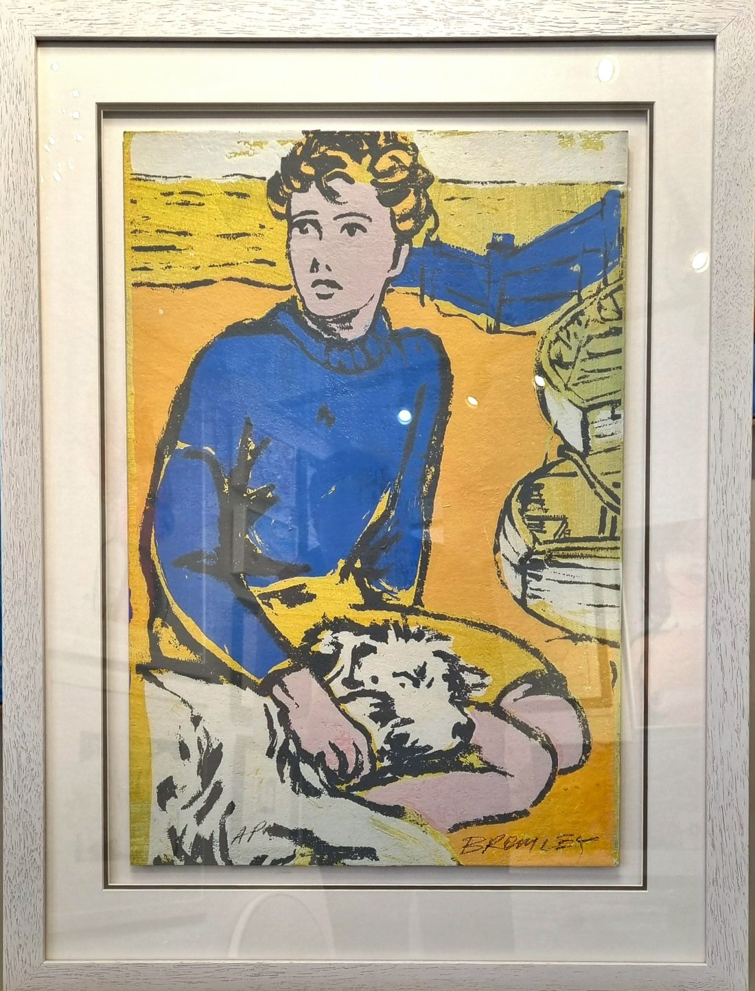 A beloved scene of a boy with his dog. A coastal style piece framed in whitewashed wood (Under Glass)