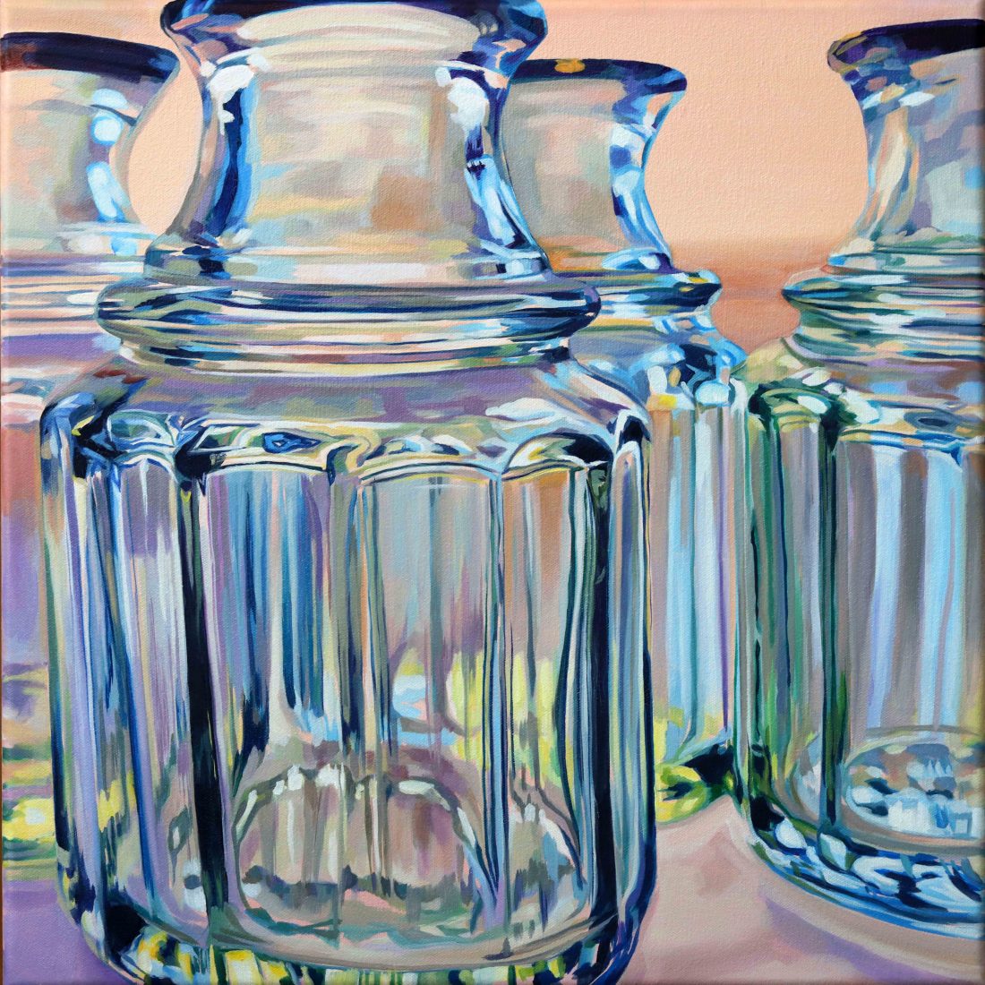 Framed in a light timber trim frame, measuring 48.5×48.5cm.
