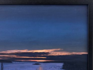 Framed in contemporary black under non-reflective glass and ready to hang.