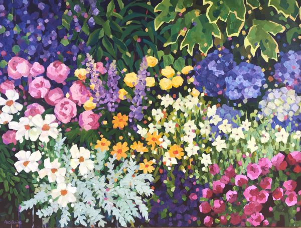 Painted in the studio. This beautiful artwork is framed and ready for your space.