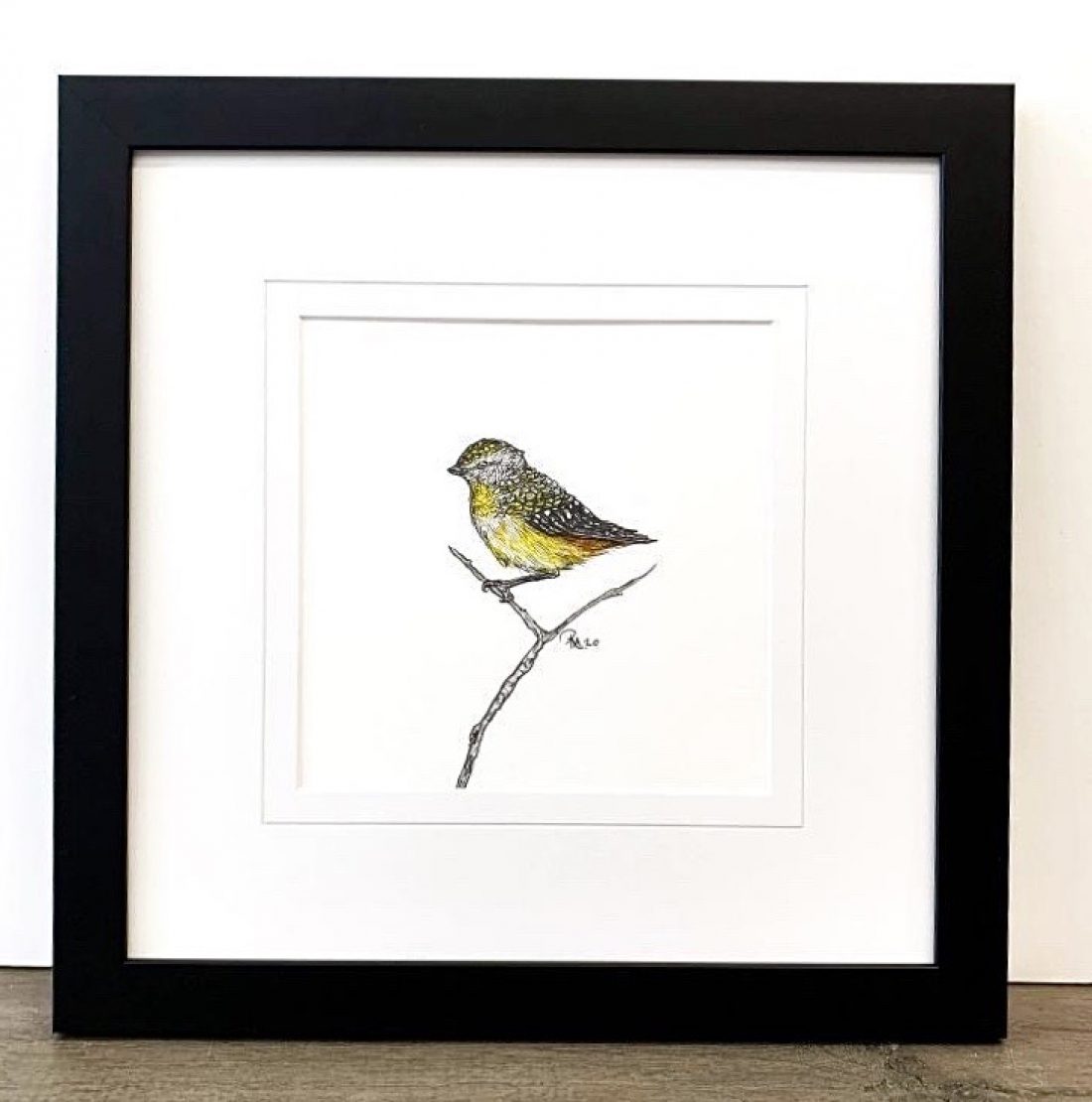 Framed in a contemporary black frame, ready to hang – framed size (39.5×39.5cm)