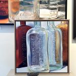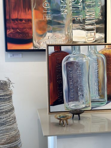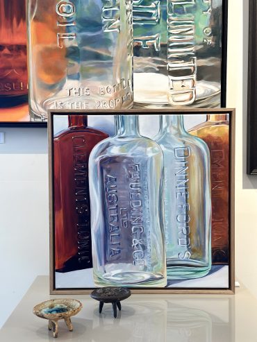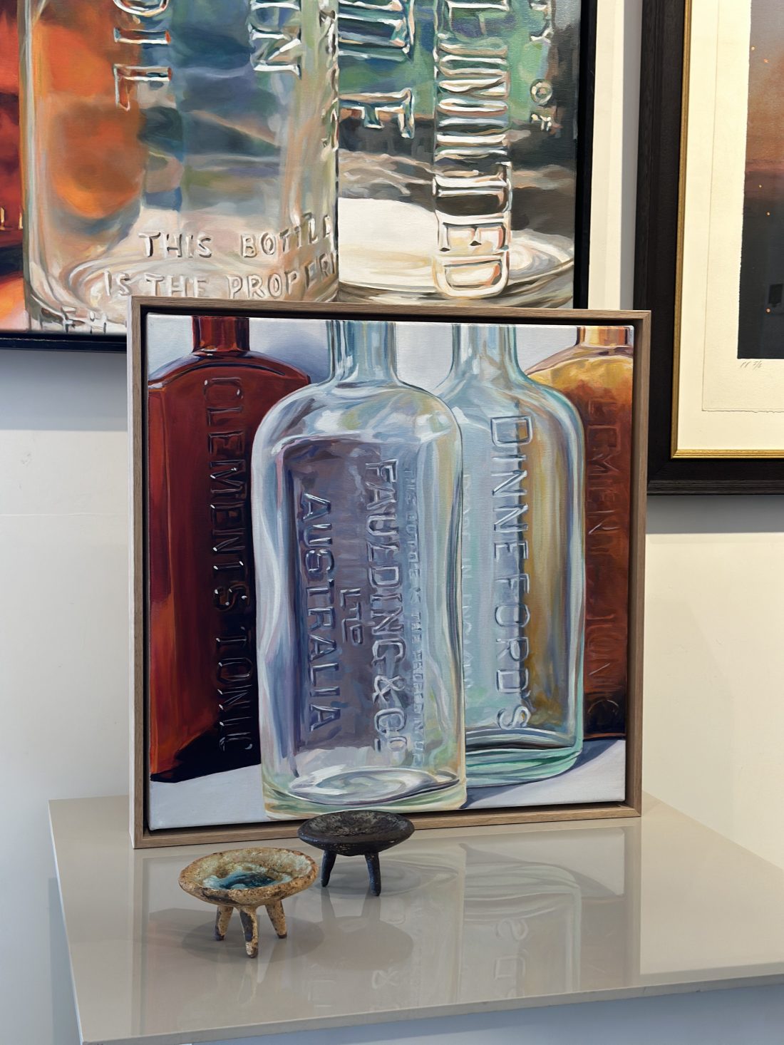 Framed in a light timber trim frame, measuring 48.5×48.5cm.