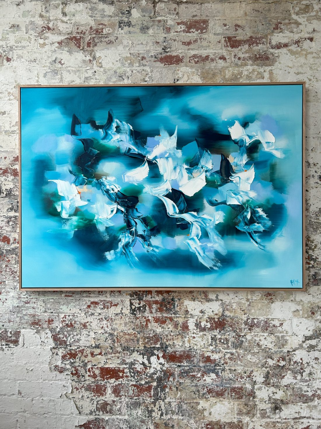 103x143cm including the oak trim frame. Ready to hang.
