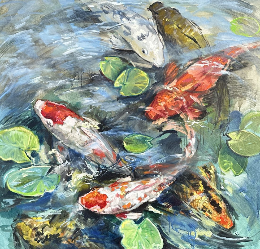 A painting of seven Koi fish is considered lucky and is often used as a symbol of good fortune and perseverance.
