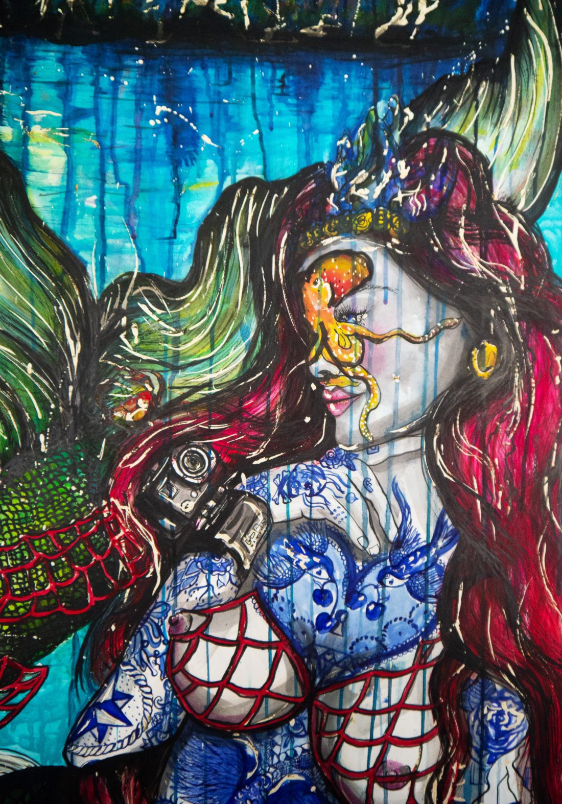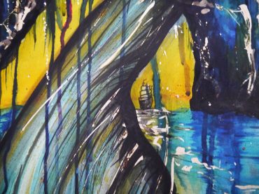 This painting comes framed in a contemporary black frame under perspex (framed size approx: 160x110cm)