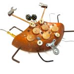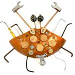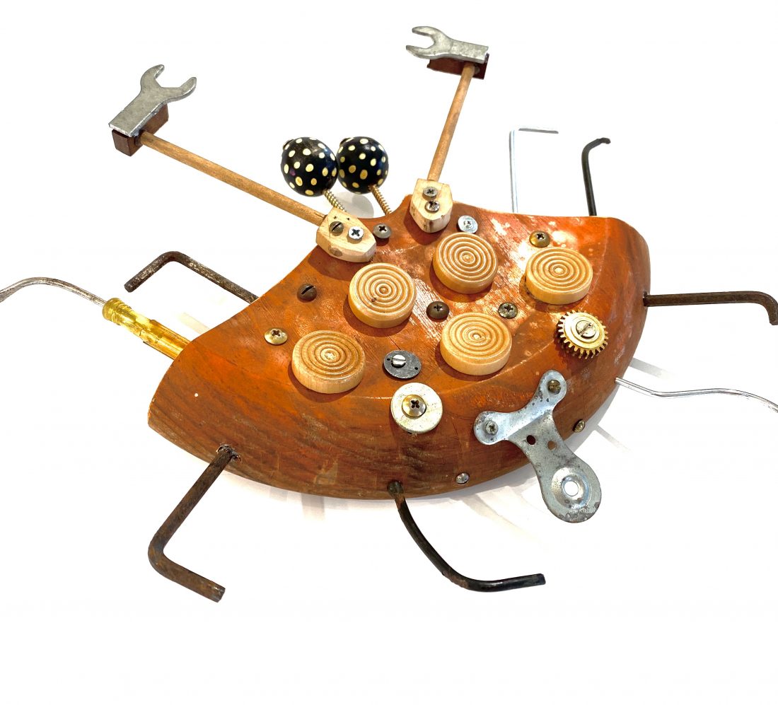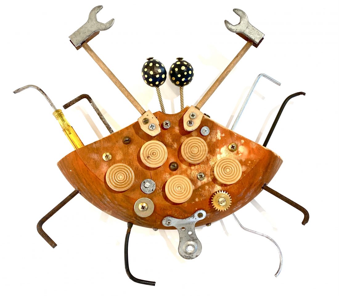 A sculptural hanging piece by Nicole de Mestre. Hand crafted from recycled and found materials.