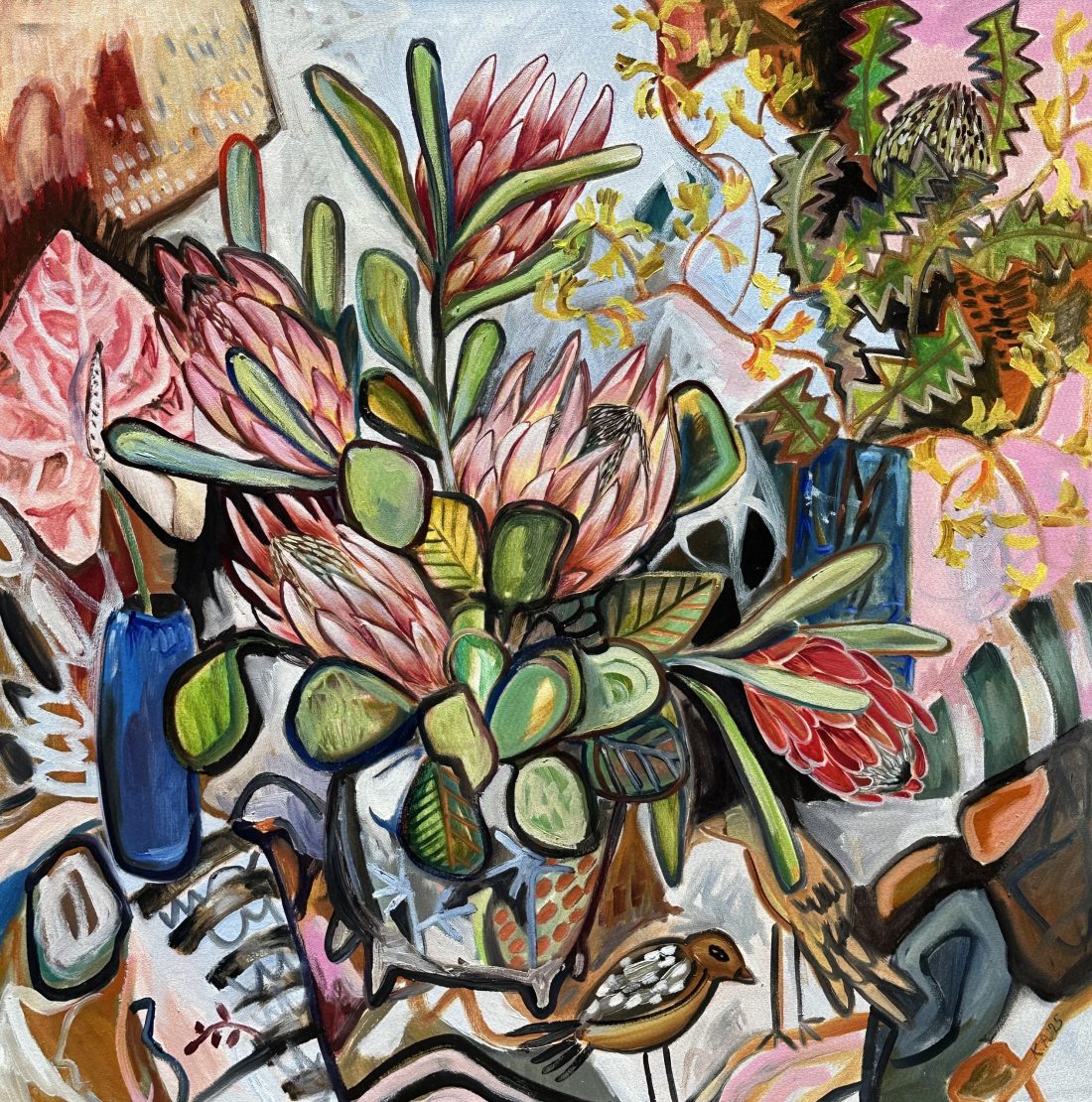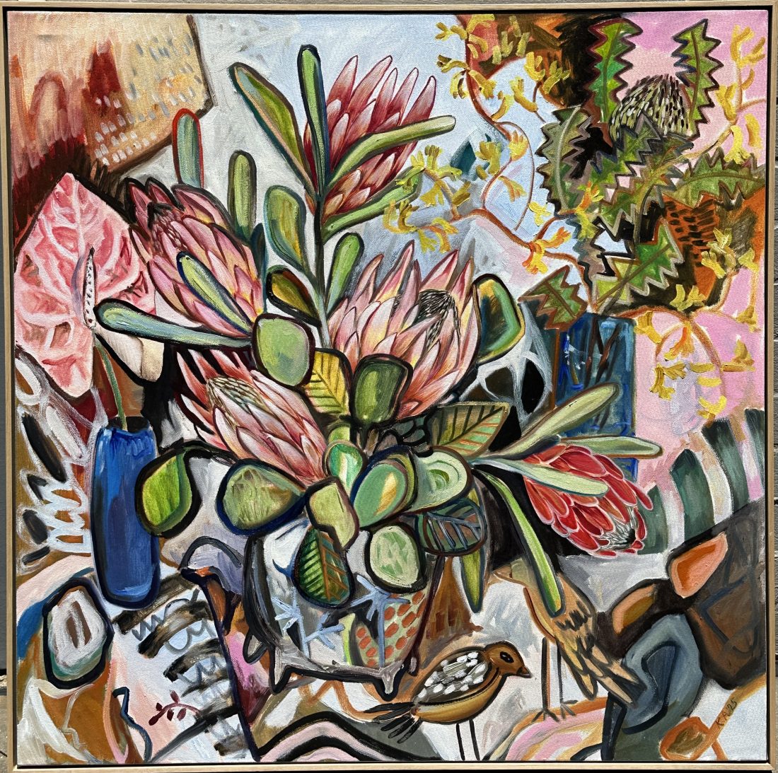 Framed in contemporary oak. Ready to hang and enjoy in your home.