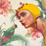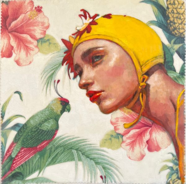 MEDIUM: Oil, encaustic wax, fabric on wood panel