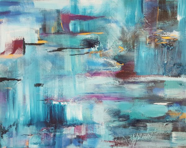 This original abstract painting by Kate Frank is framed and ready to display in your space.