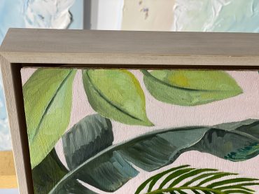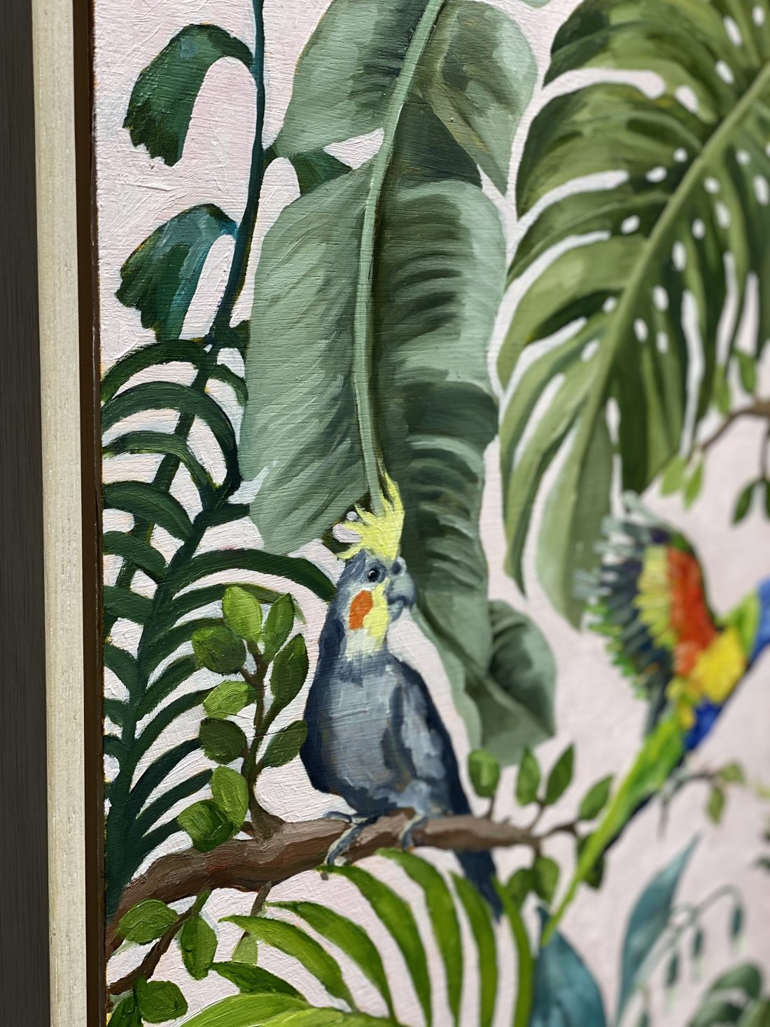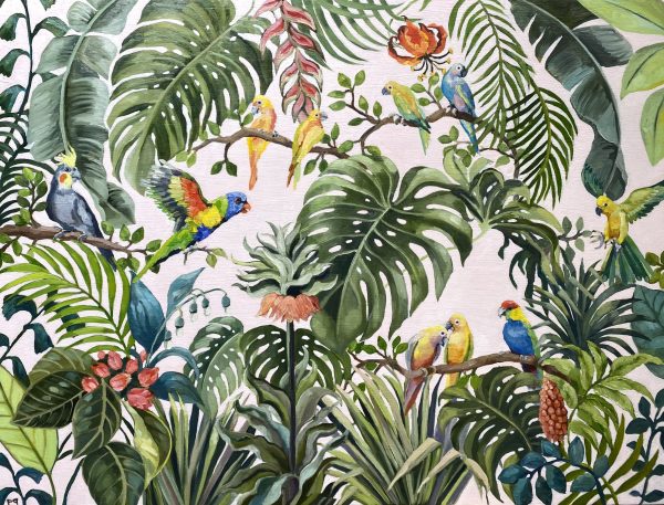 Beautiful, original oil painting by artist Petra Pinn. A lush and abundant scene featuring native Australian flora and fauna.