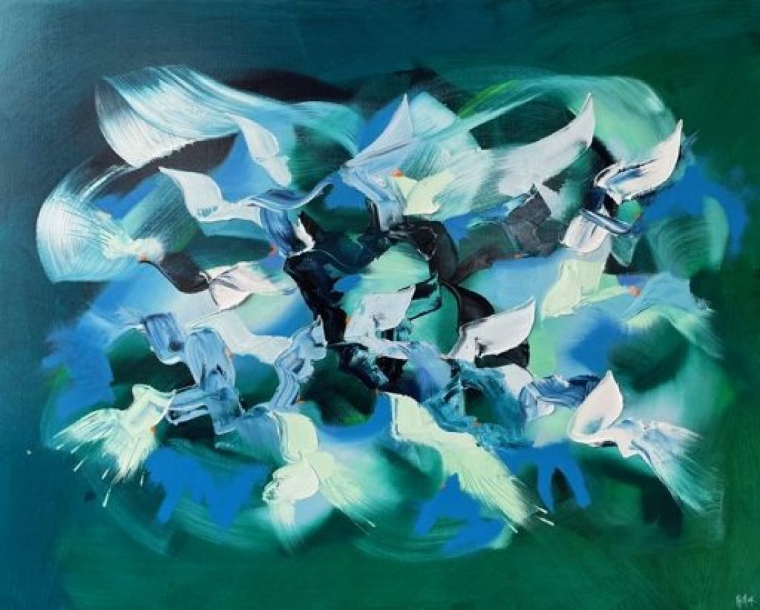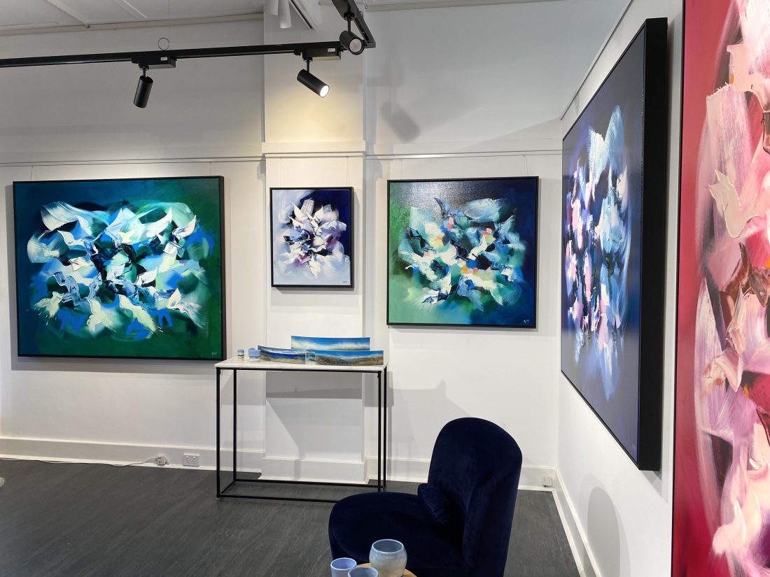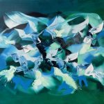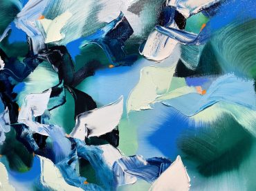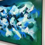 Original painting by abstract artist Catherine Hiller, featuring a beautiful emerald palette and lux finish. Part of the her solo exhibition “Délices d’Eden” at KAB Gallery Sydney.