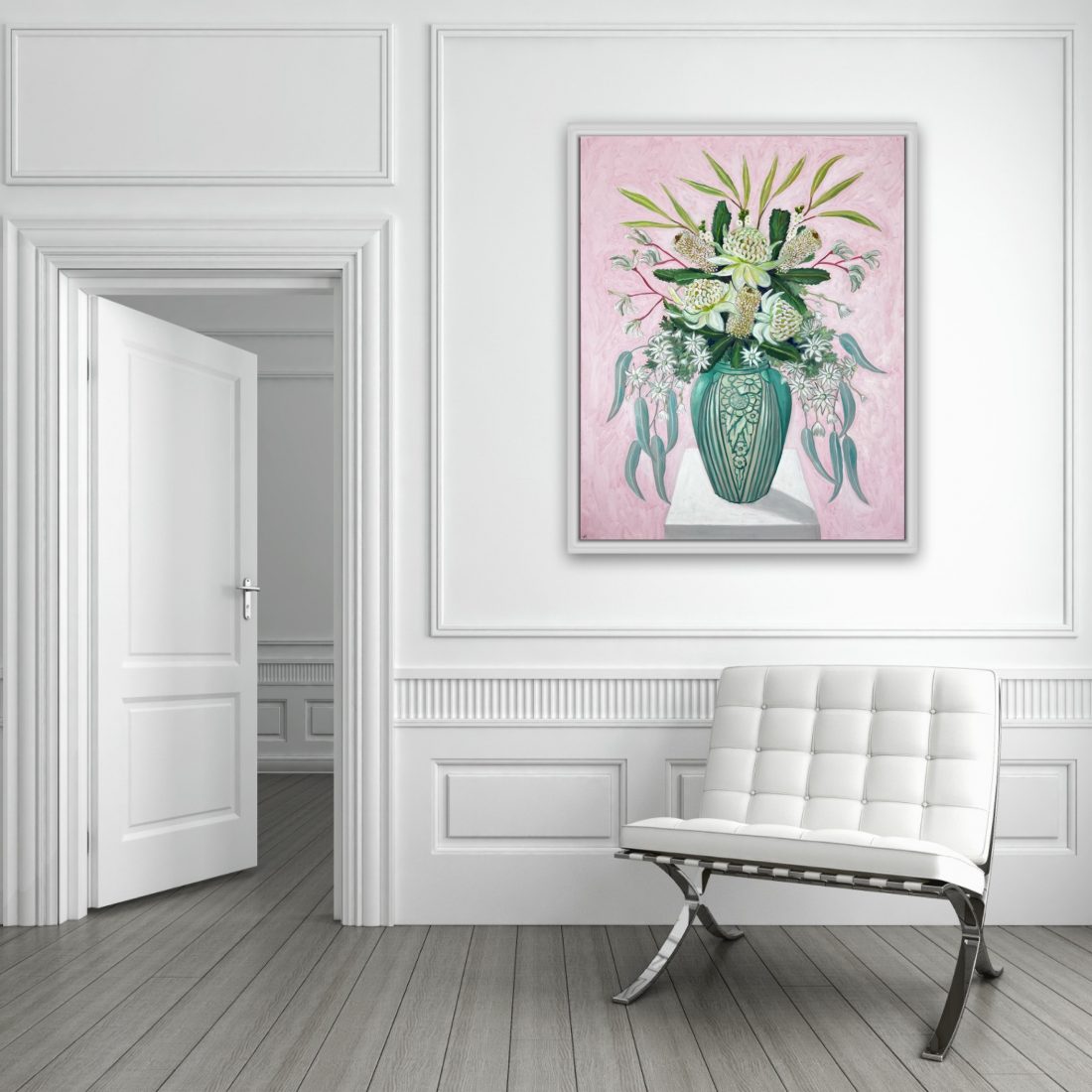 Framed in a contemporary white trim frame (overall size 125x94cm).