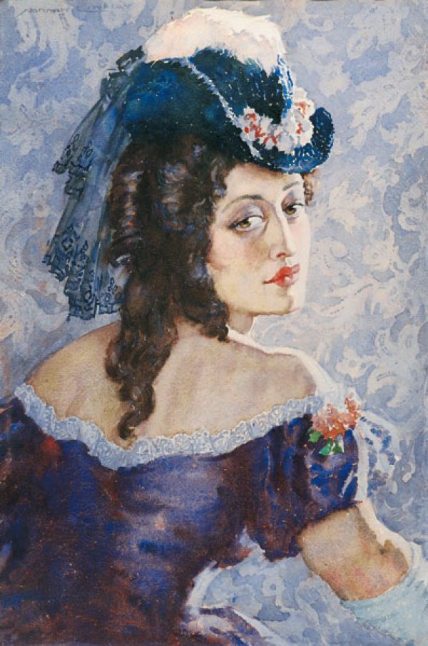 Rita Lee was one of Norman Lindsay’s favourite models however, this portrait is the only known watercolour of her. The amethyst toned portrait is widely popular and is often referred to as his “most beautiful watercolour portraits.”