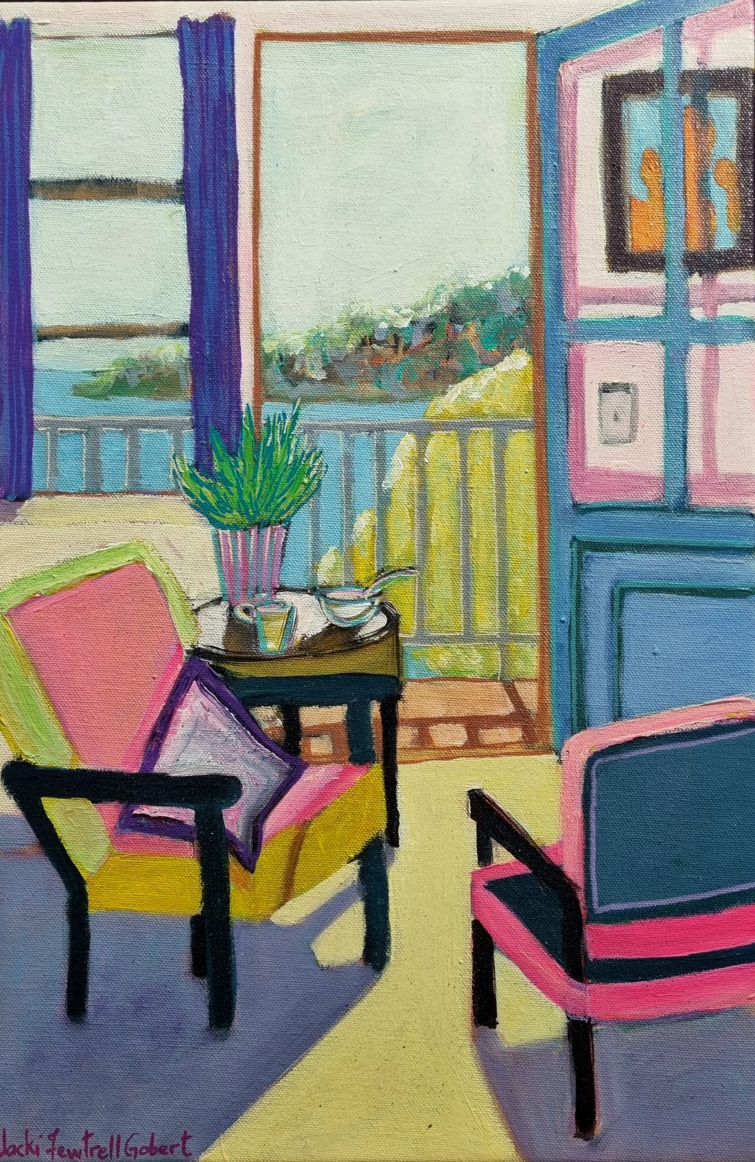 Framed in a light oak trim frame, measuring 47.5x32cm.