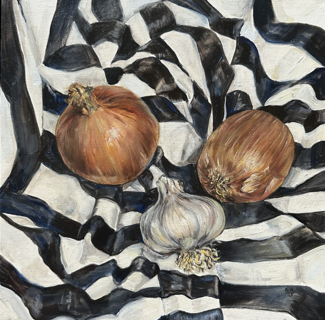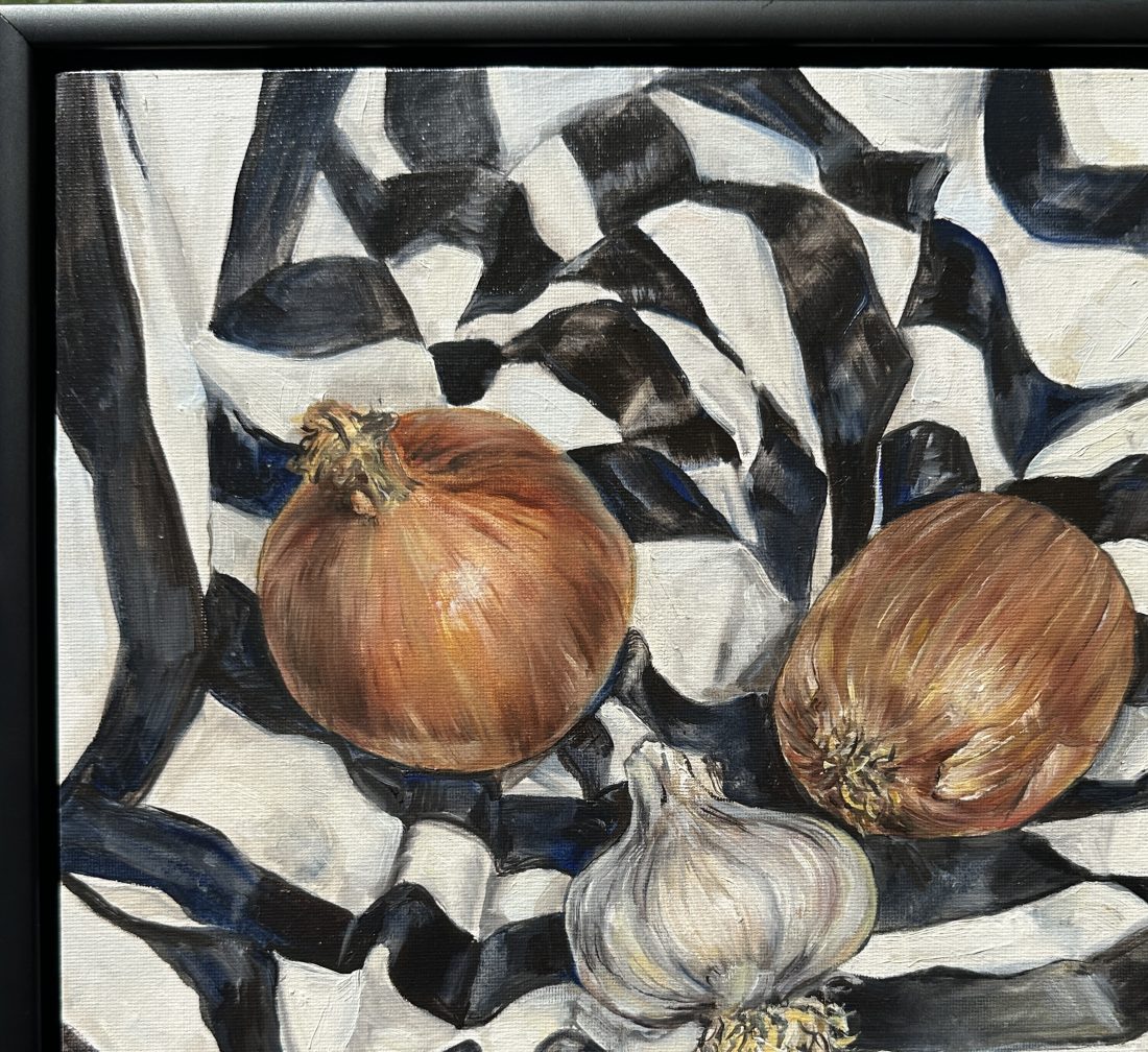 Painted from a still life set up in the artist’s studio. An original oil painting in a contemporary style.