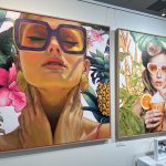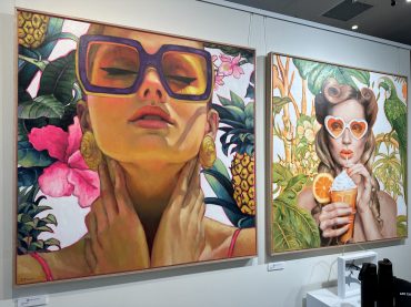Meet the radiant sister piece to Golden Daze—Laurie McKern’s Tangerine Dream is a bold, joy-filled portrait bursting with retro charm. With a fluorescent orange undertone and vintage styling, this 101x100cm work celebrates the warmth of summer with a playful twist.