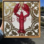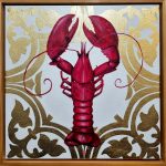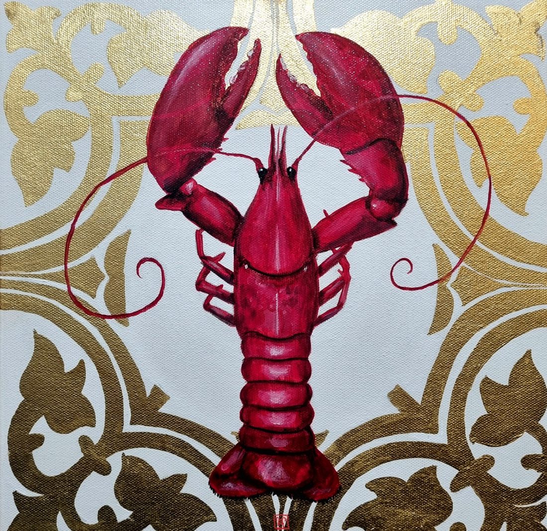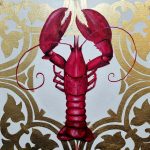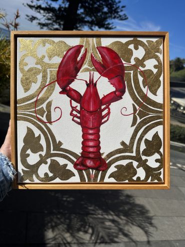 Make a contemporary statement with this artwork, Elegant Crustacean. This fun sized 30x30cm (approx. 11.8 x 11.8 inches) acrylic and gold leaf painting features an unmistakable pop-red to contrast the lux gold detailing. Mel Bling’s Lobster series continues with this elegantly positioned Lobster as the central focal point with a delicately applied gold leaf design. A unique pop art piece with a touch of opulence.