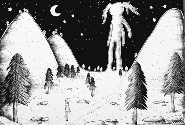 Her art explores the imagination of a child, drawing from childhood memories of her own, such as the magical feeling of camping around the camp fire with friends.