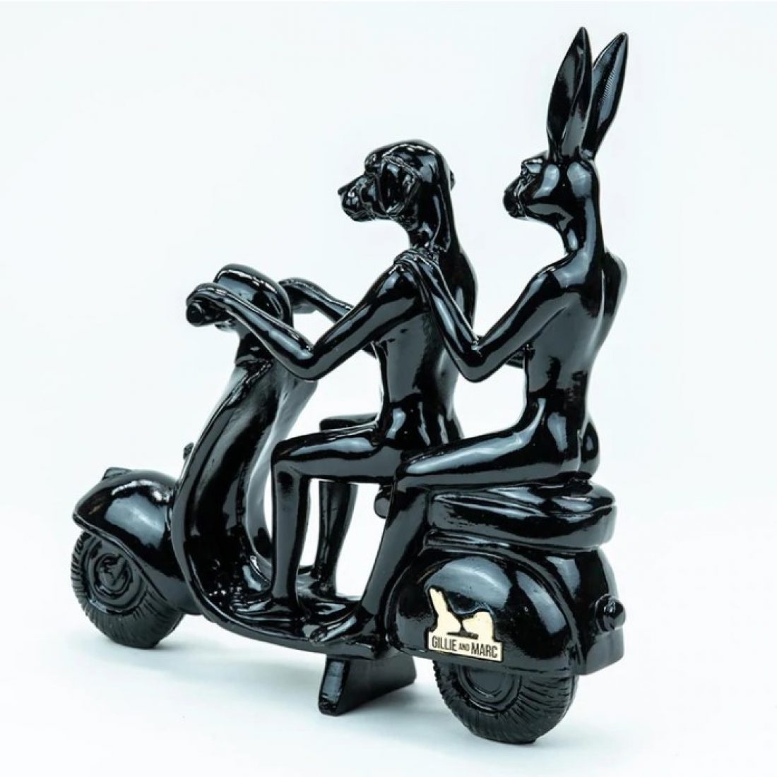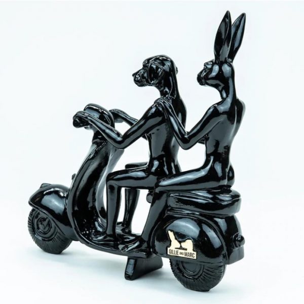 This miniature sculpture is modelled off one of Gillie and Marc’s most iconic pieces of work, featuring Dogman and Rabbitwoman riding a Vespa. When Gillie and Marc first met, they chose this mode of transportation to create magical new experiences with one another. Since that day, the Vespa has conjured some of their favourite memories! This sculpture expresses the sense of happiness that comes from falling in love. In these moments, we care little about the destination because we’re so bewildered by every second of the journey. This colourful polyresin makes an attractive statement piece that will invigorate any room, bringing joy and brightness.