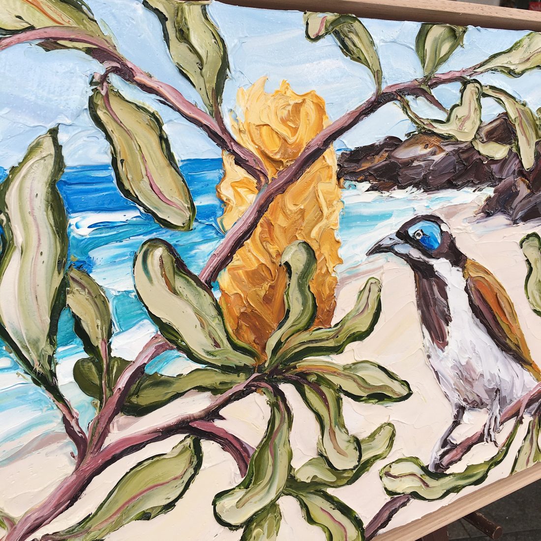 Original oil painting by Australian artist Steve Tyerman. Framed in oak and ready to hang with a total size of 44x74cm.