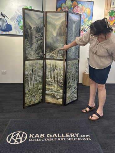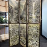 As a traditional screen, the piece offers flexibility in how it is displayed. It can function as a room divider or be positioned as a feature artwork, with the ability to adjust the angle and view depending on the space.